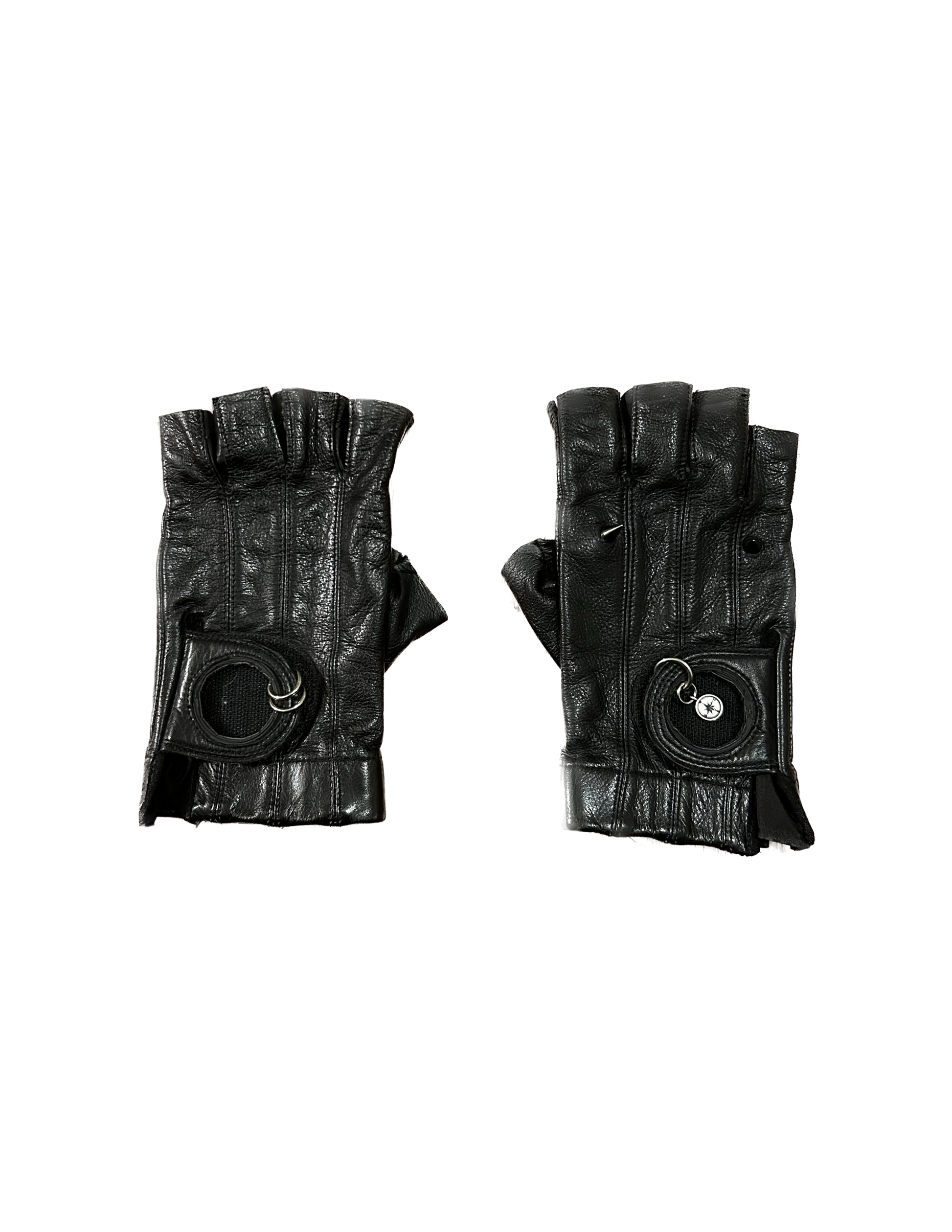 Custom fingerless lamb leather gloves made in house by the Jartera team. fitted with sterling silver and steel hardware and spiked knuckles